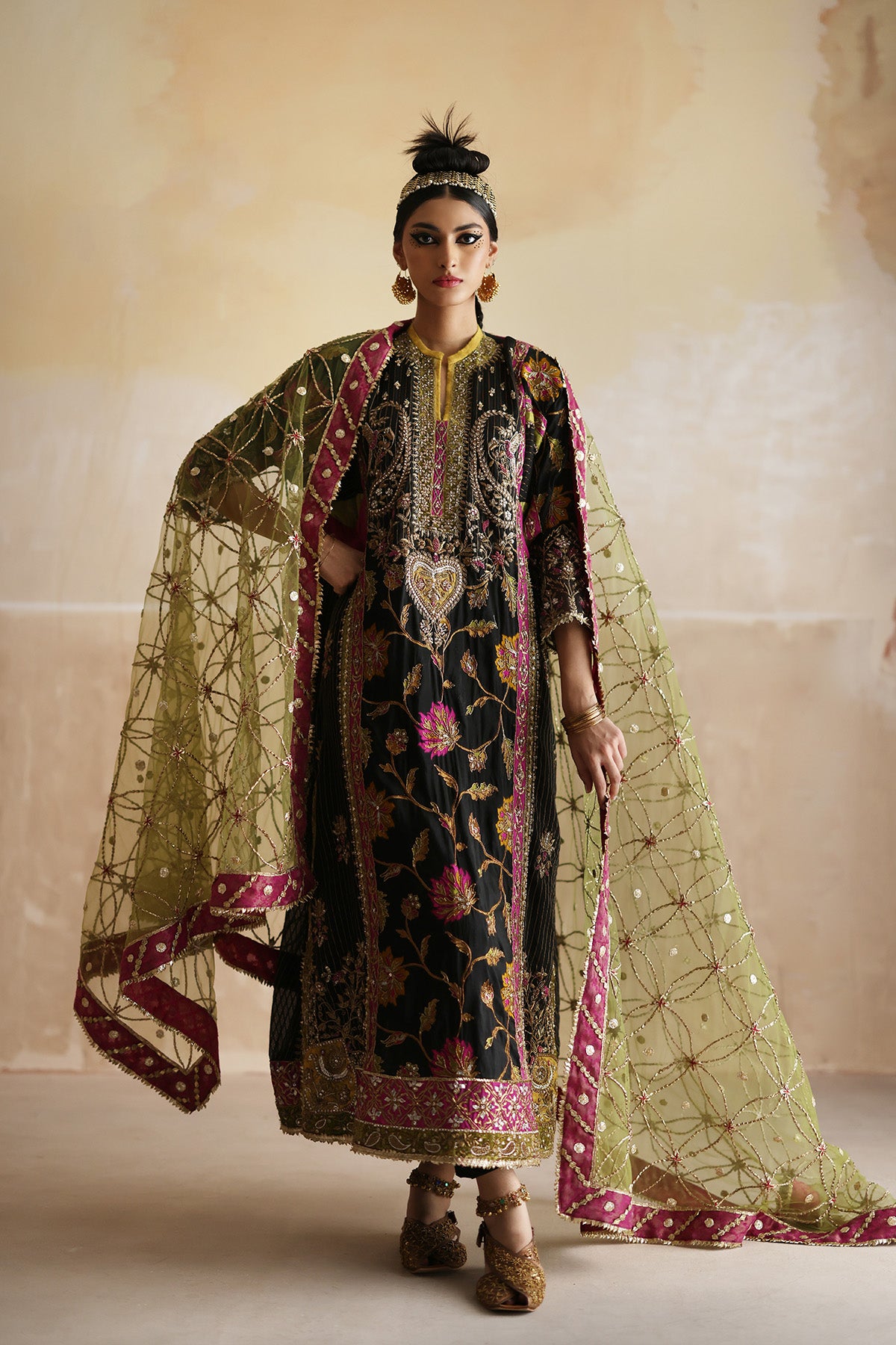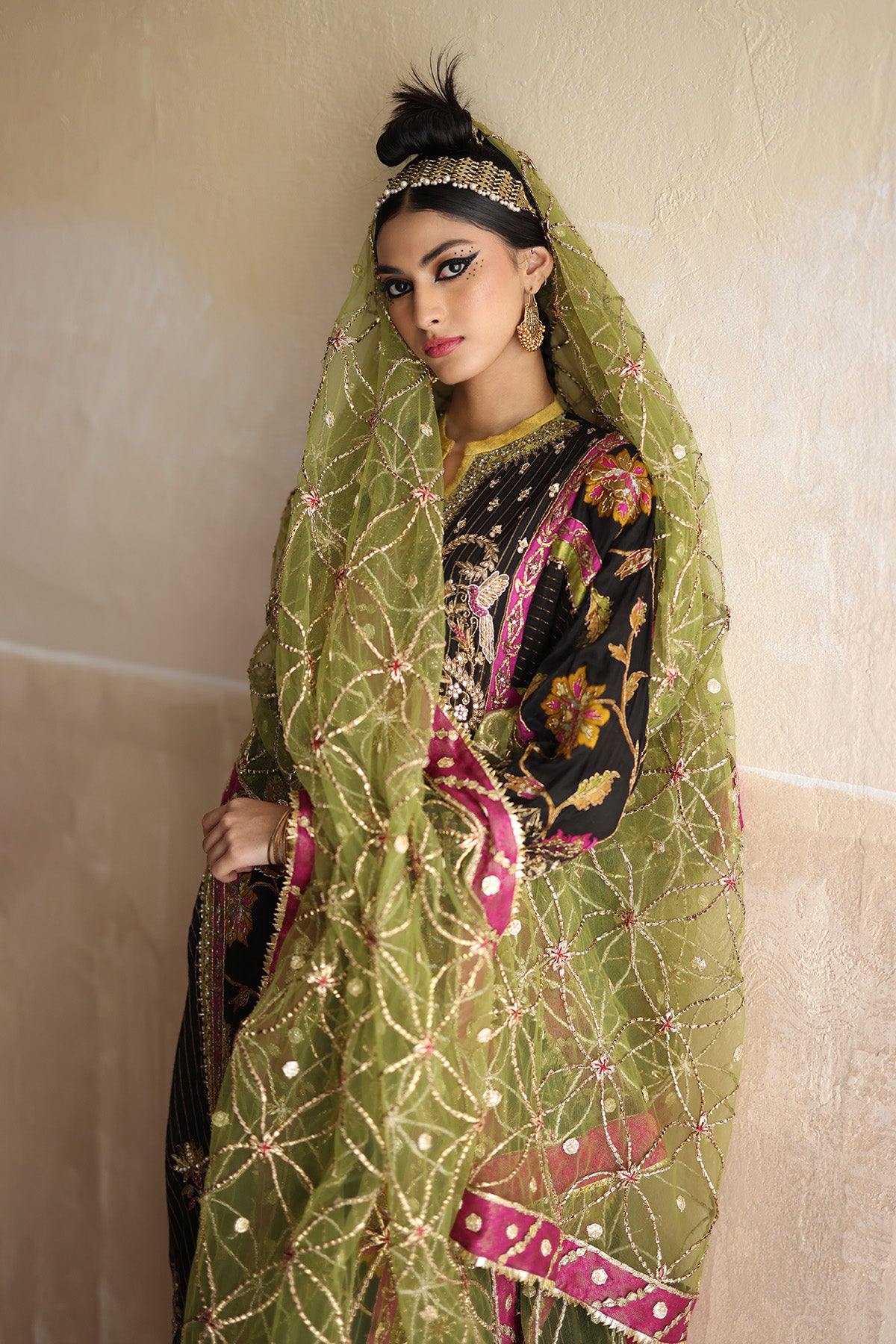 Meticulous craftsmansship showcasing the combination of comfort and elegnace in this net base gota work duppata which has beautiful hot pink patti on edge. Hot pink thread in floral pattern is adding color to this beauty.