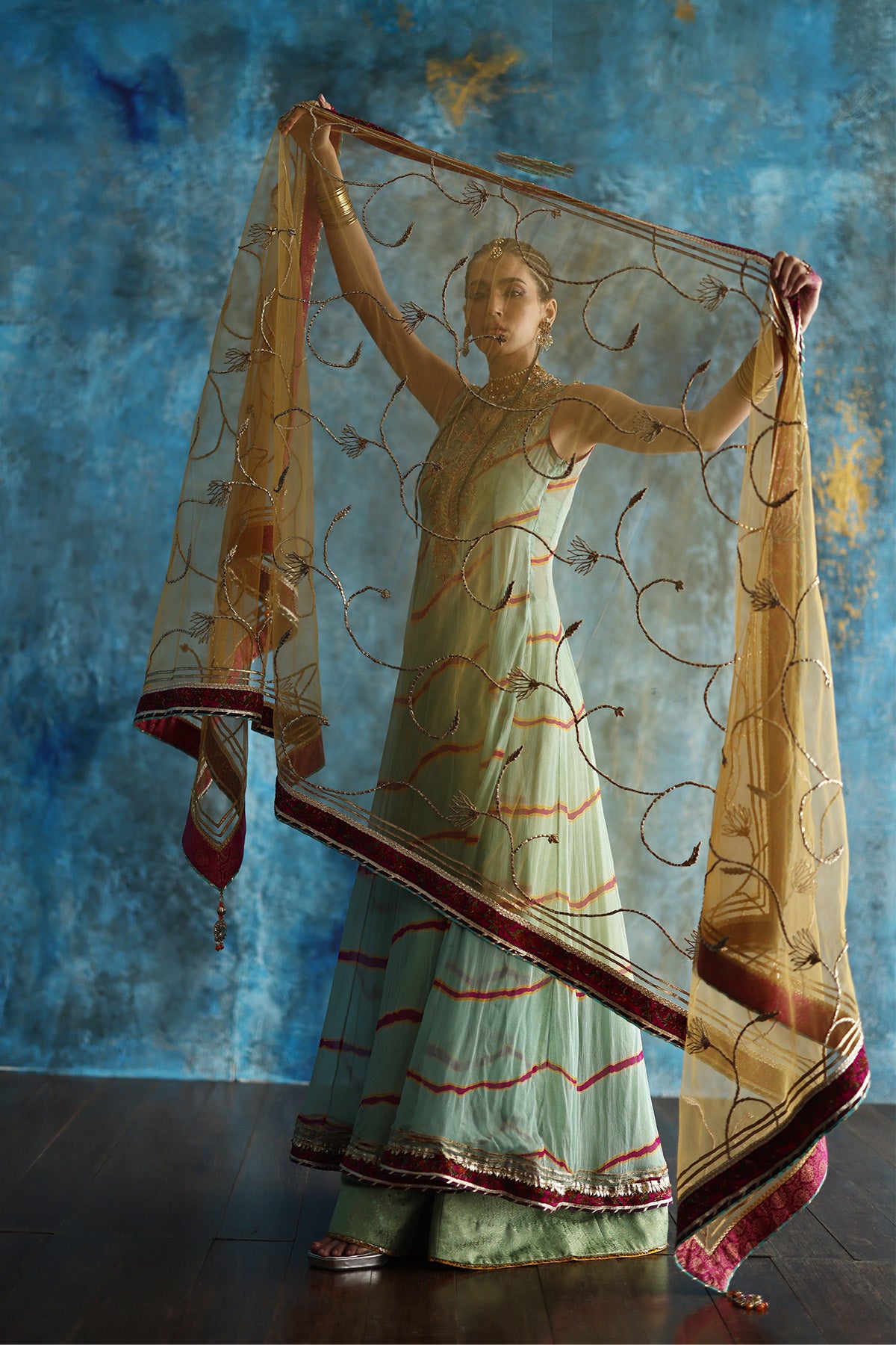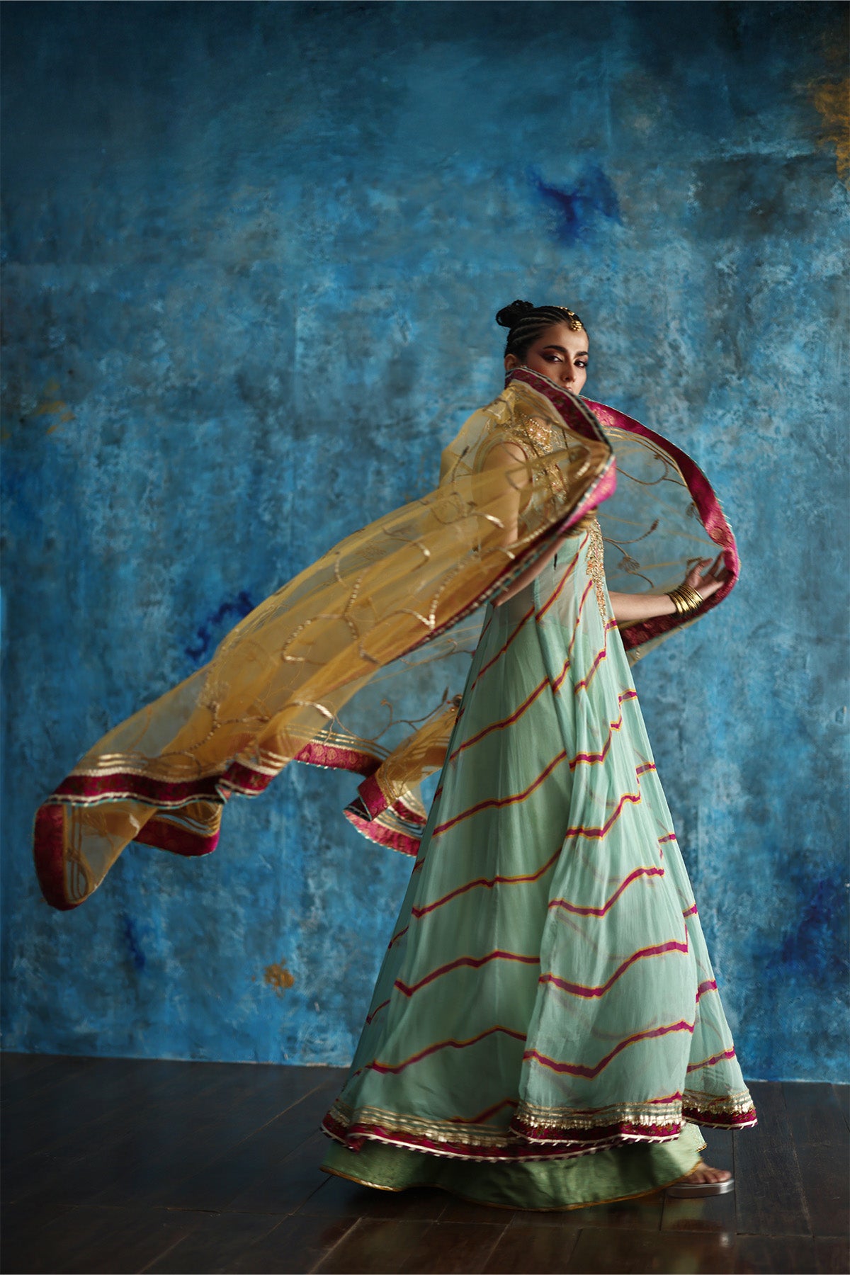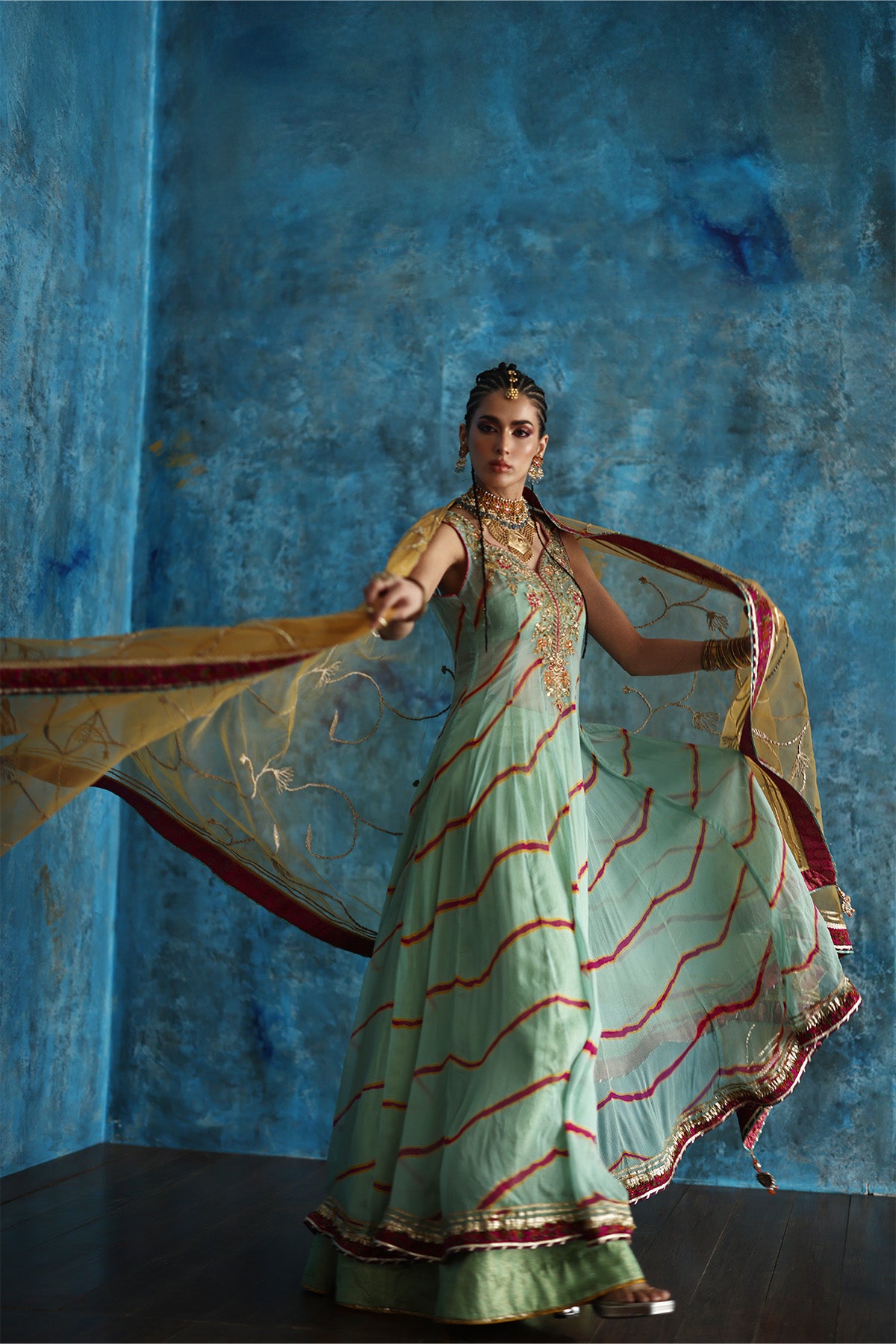 This soft mint green pishwas brings effortless elegance to life.