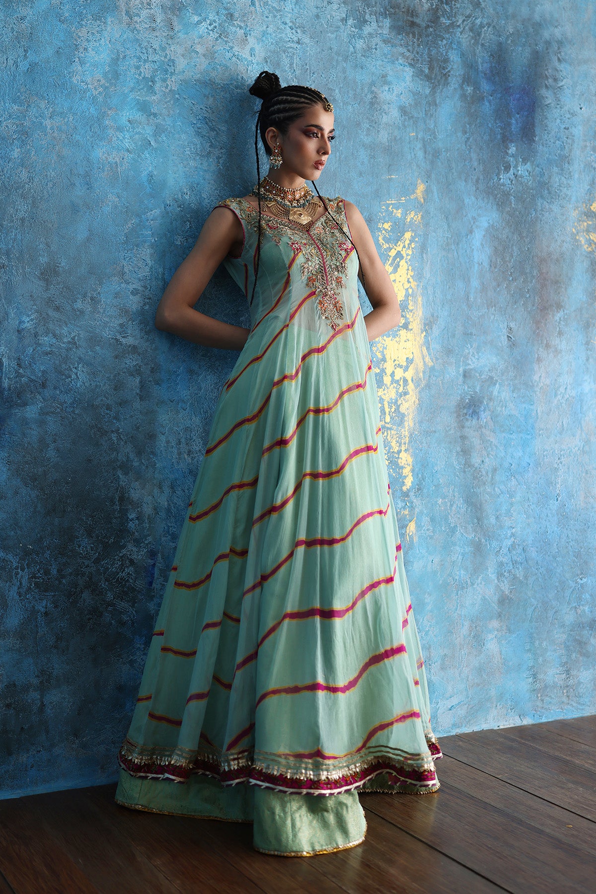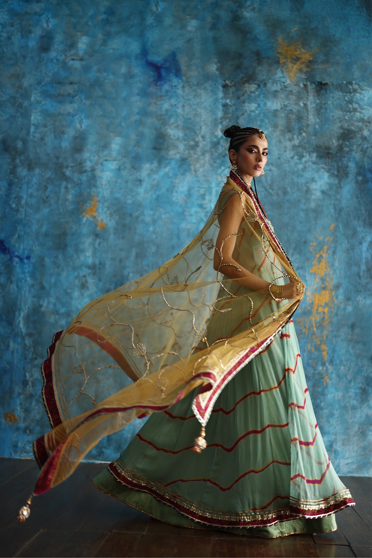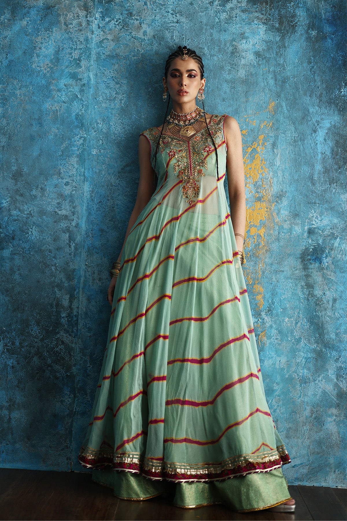This soft mint green pishwas brings effortless elegance to life.