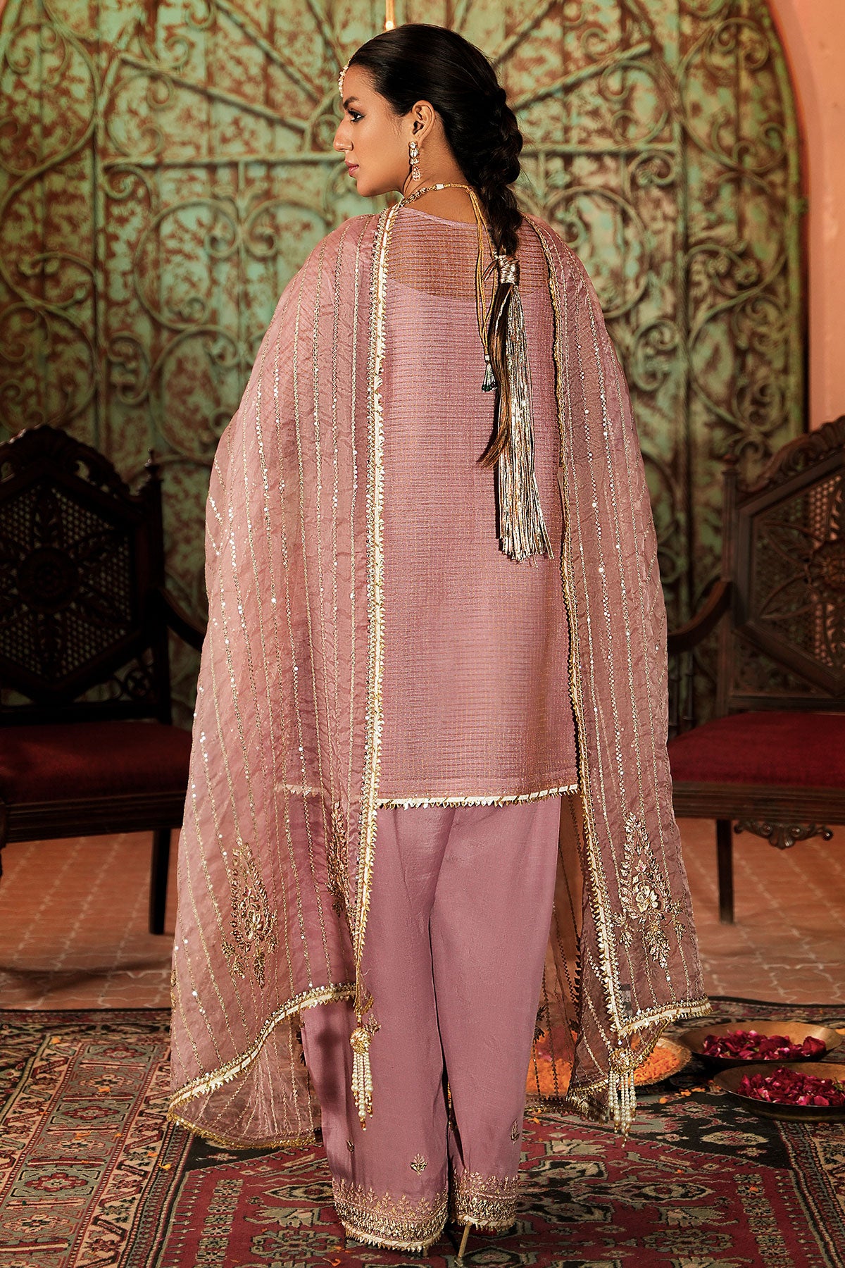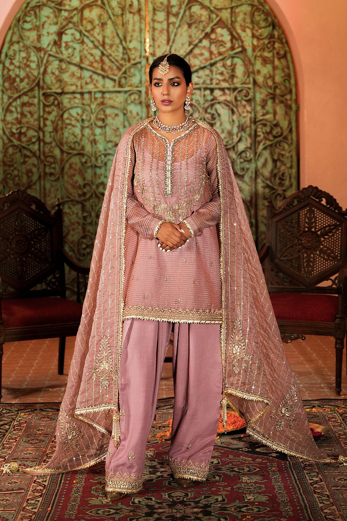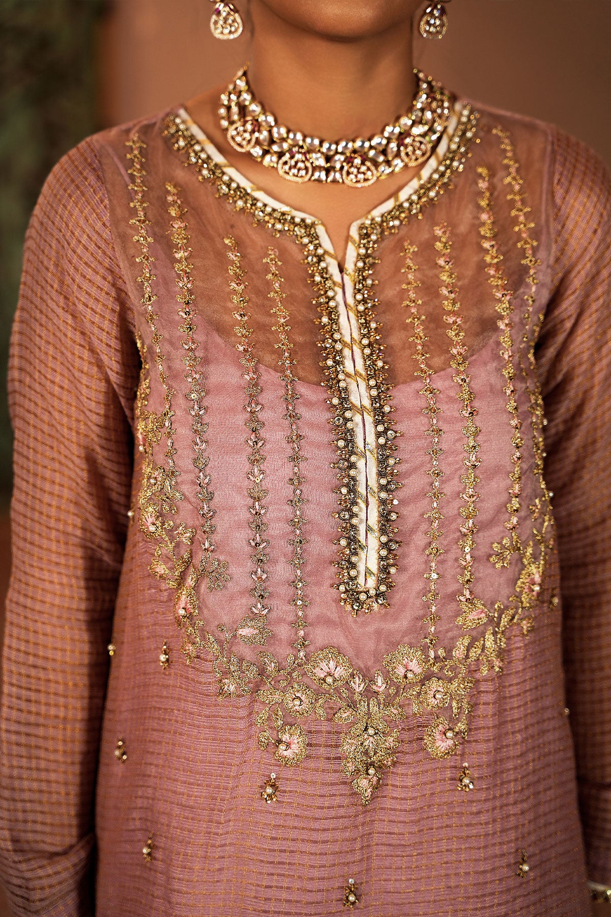 Step into timeless elegance with this light pink shirt, adorned with delicate tilla and resham work along the hem and neckline. Hand embellished with intricate details of dabka, tilla, pearls, and naqshi, it exudes opulence at every glance. Finished with exquisite touches of gota magzi and kingree.